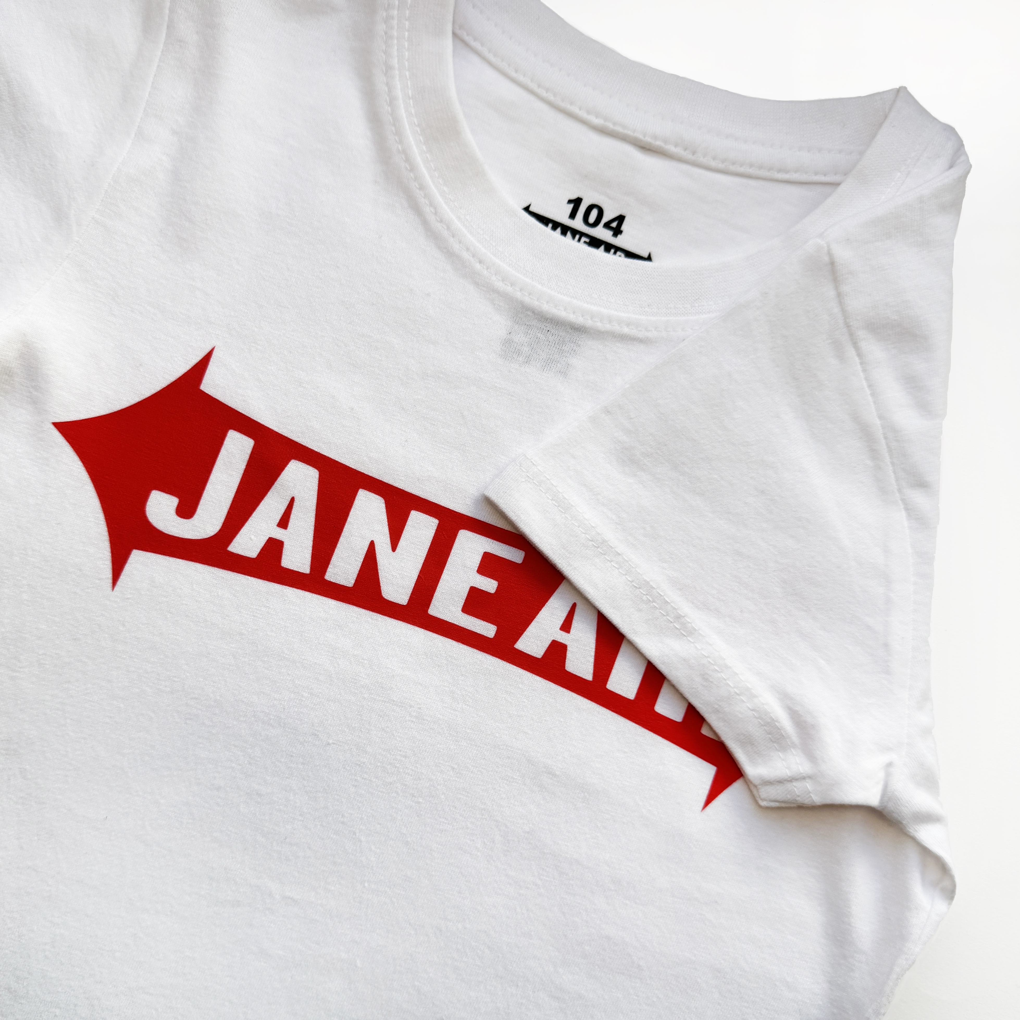 Детская белая футболка Jane Air с авторским принтом на груди .